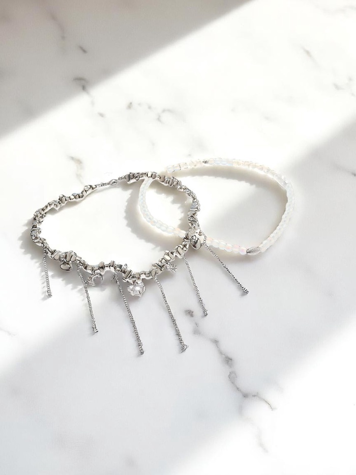 Коллекция, вдохновлённая гематитом и жемчугом, придаёт изделию особый блеск и глубину цвета, подчёркивая утончённость и изысканность. Многослойный дизайн добавляет объёма и динамики, позволяя колье стать выразительным акцентом как в повседневном, так и в вечернем образе.