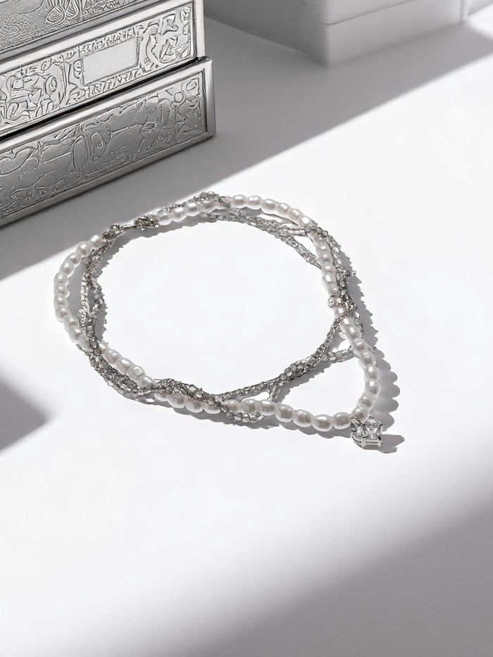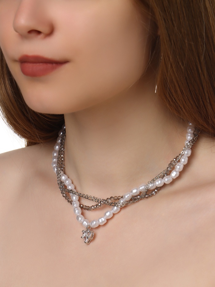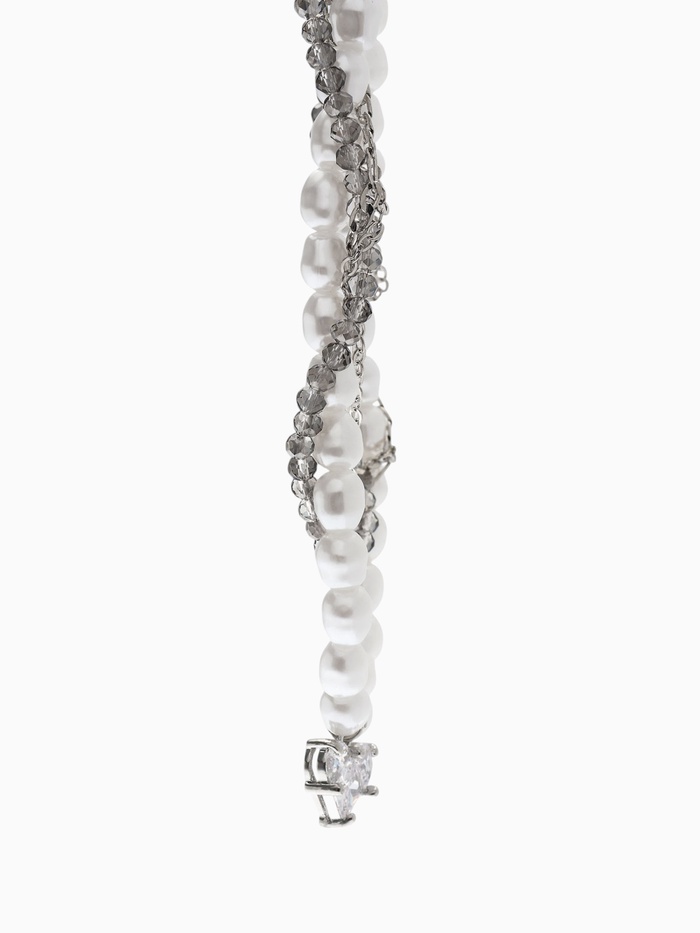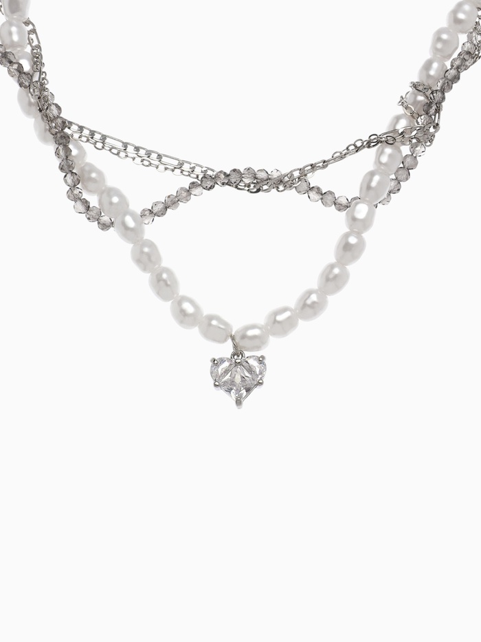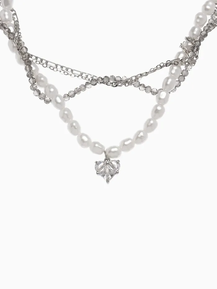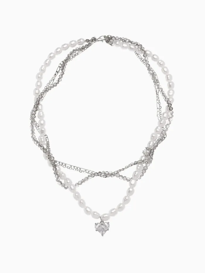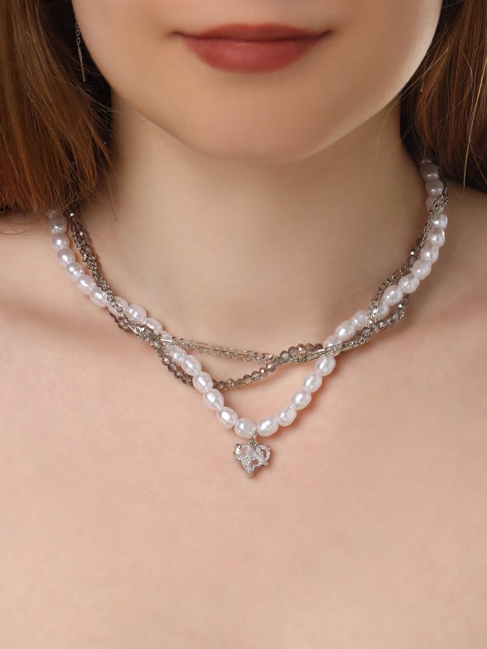 Многослойное колье с крупным сердцем в нежной бело-серой палитре и серебристой фурнитурой — воплощение лёгкости и утончённой элегантности. Длина 32 см оптимальна для создания выразительного акцента на шее, идеально дополняя как повседневные, так и праздничные образы.