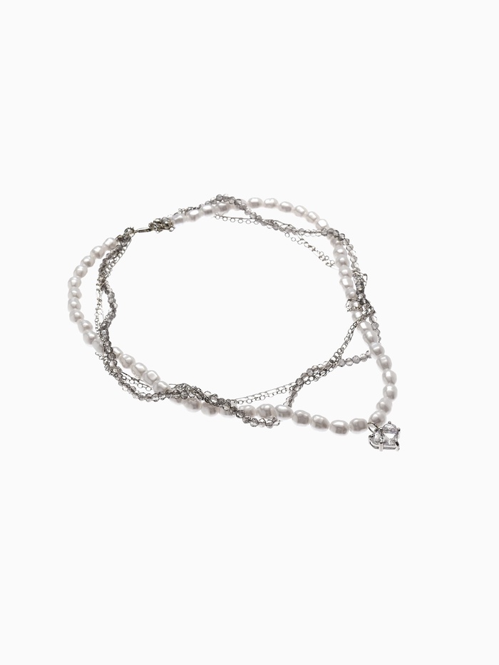 Колье «Акцент» сердце, многослойное, бело-серое в серебре — Характеристики