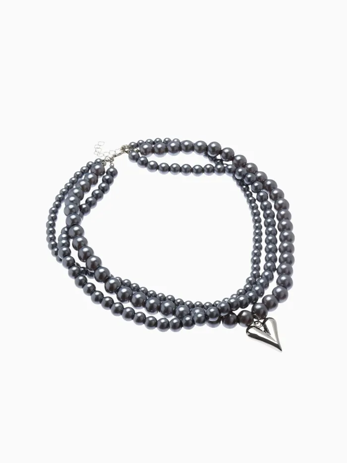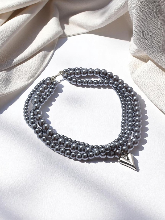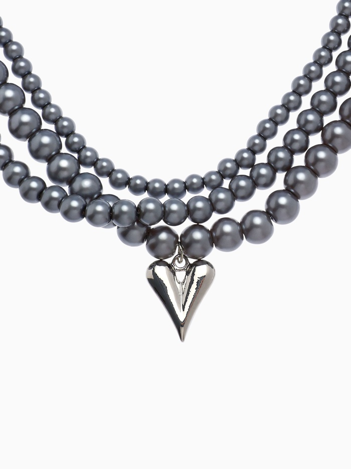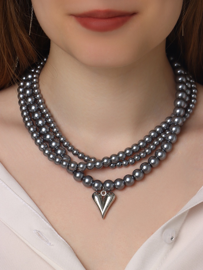 Колье «Акцент» сердце, под гематит, многослойное, серое в серебре — Характеристики