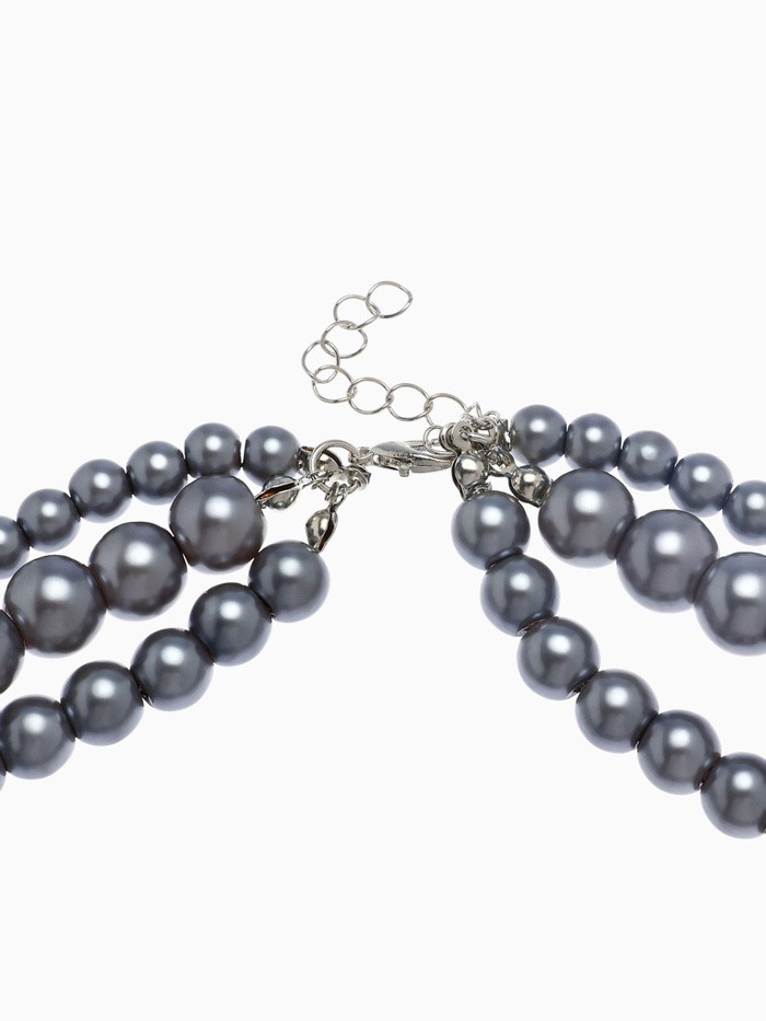 Многослойное колье длиной 32 см в оттенках серого с эффектом гематита и серебристой фурнитурой — смелое сочетание современного стиля и изящной элегантности. Лёгкий пластик гармонично дополняется металлическими вставками, создавая эффект глубины и объёма, который притягивает взгляды и подчёркивает индивидуальность.