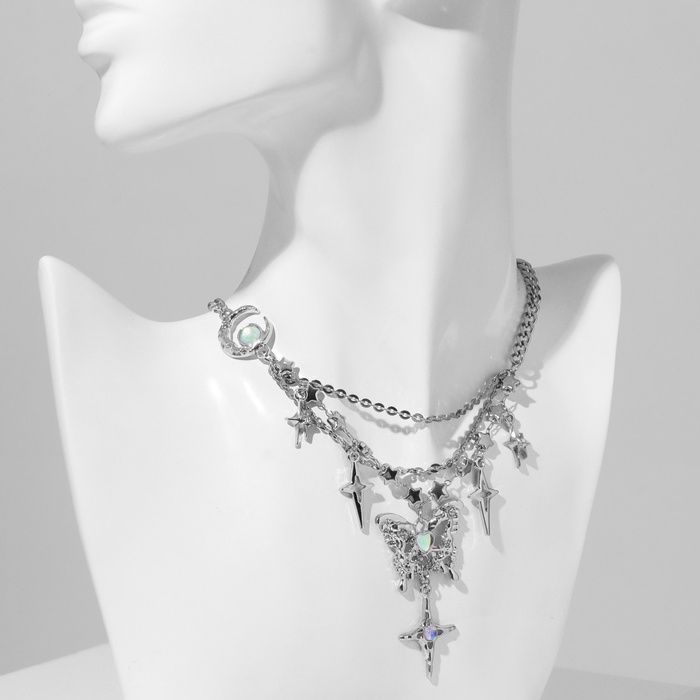 Колье «Бабочка» звёзды, белое в серебре, 40 см — Характеристики