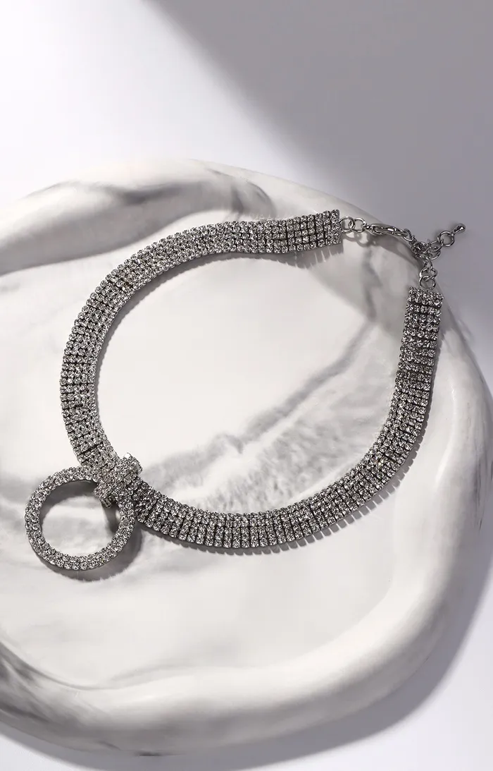 Колье-чокер «Симфония» блеск вечера, круг, цвет белый в серебре, 30 см — Характеристики