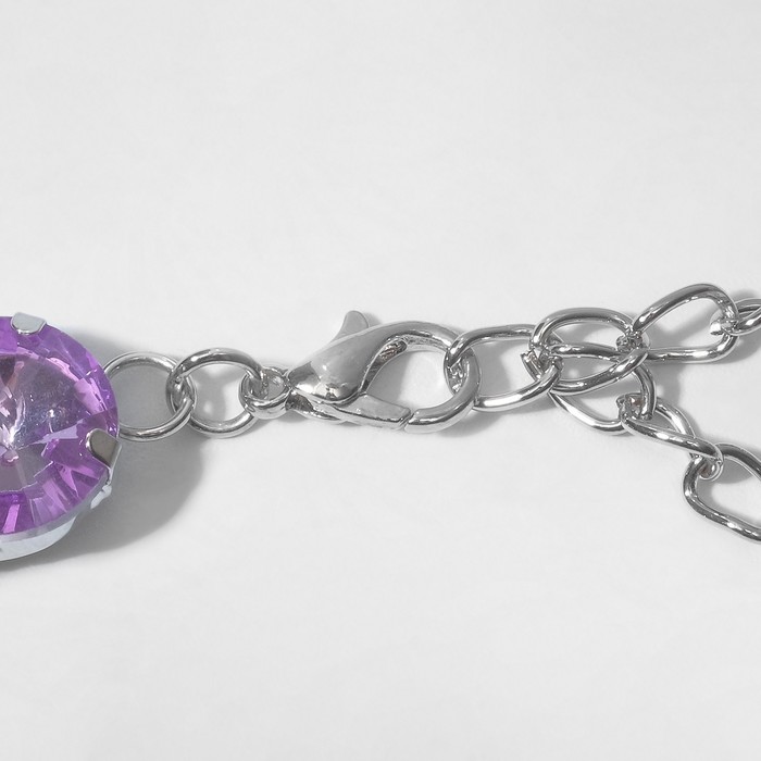 Колье «Драгоценность» капля, сиреневое в серебре, 32 см — Характеристики