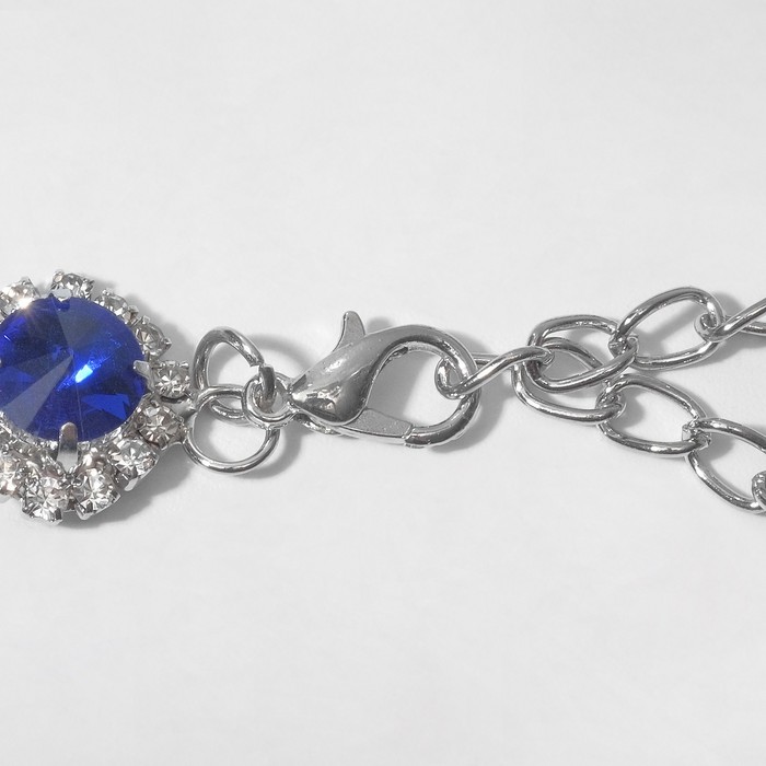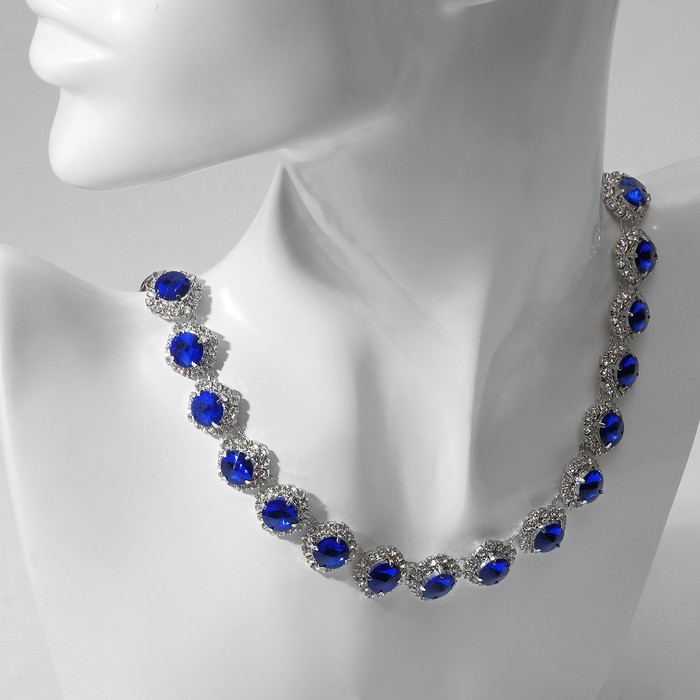 Колье «Драгоценность» круг в стразах, синее в серебре, 32 см — Характеристики