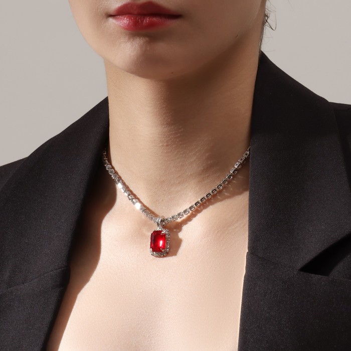 Колье «Драгоценность» квадрат, бело-красное в серебре, 36 см — Характеристики