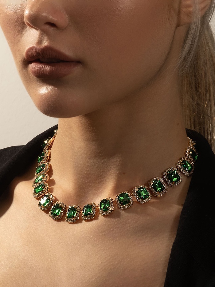 Колье «Драгоценность» квадраты в стразах, цвет бело-зелёный в золоте, 32 см — Характеристики