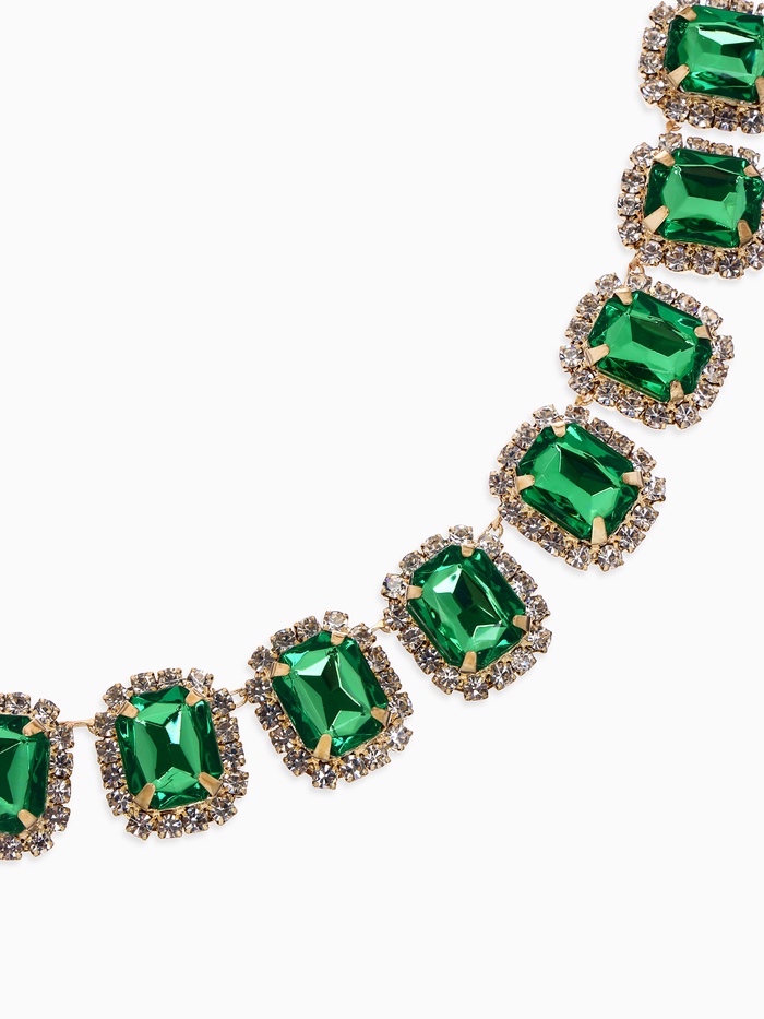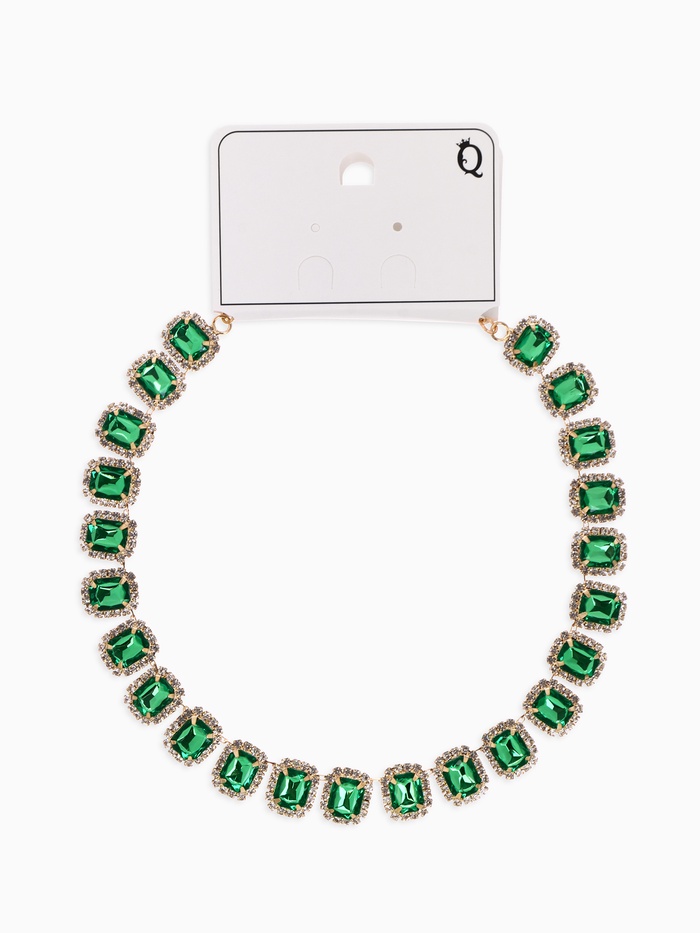 Колье «Драгоценность» квадраты в стразах, цвет бело-зелёный в золоте, 32 см