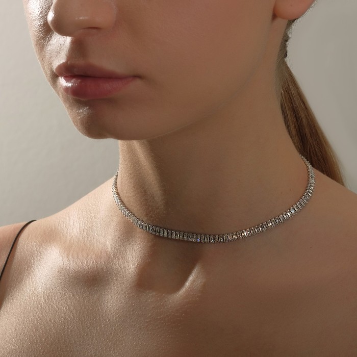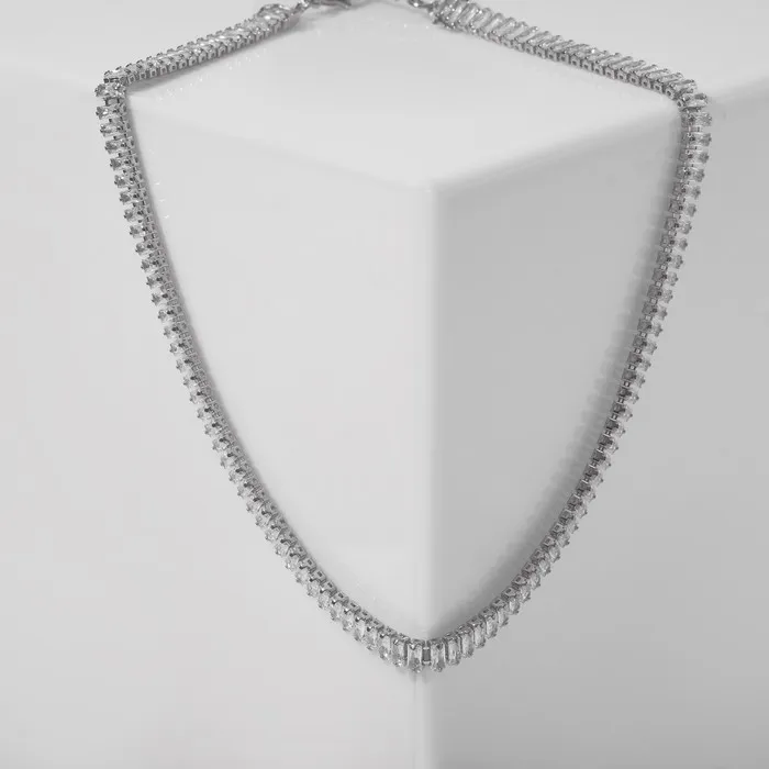 Колье «Драгоценность» прямоугольники узкие, белое в серебре, 30 см — Характеристики