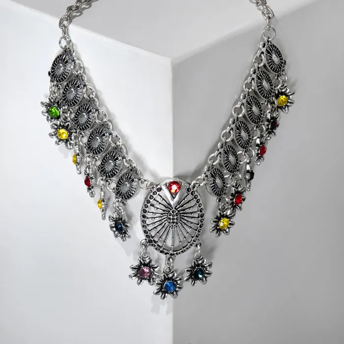Колье «Индия» овалы, цветное в чернёном серебре, 30 см — Характеристики