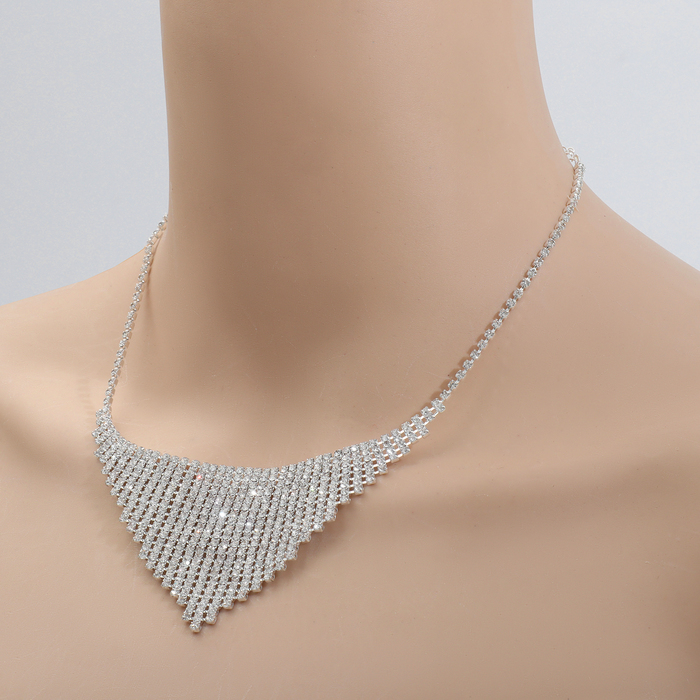 Колье «Искры» цельные, белое в серебре, 30 см — Характеристики