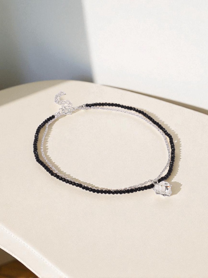 Чёрно-белое колье с двойным рядом бисера и изящной подвеской в форме сердца представляет собой гармоничное сочетание контрастных оттенков и утончённого дизайна. Длина 30 см идеально подчёркивает линию шеи, создавая эффектный и стильный акцент, который дополняет любой образ — от делового до вечернего.