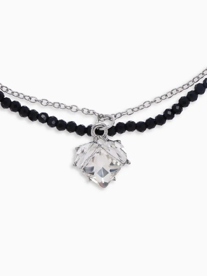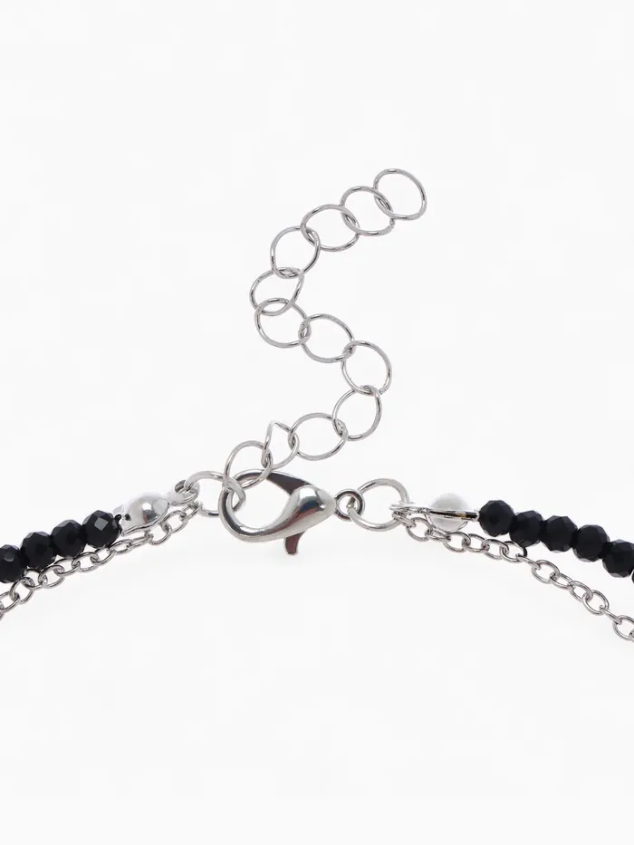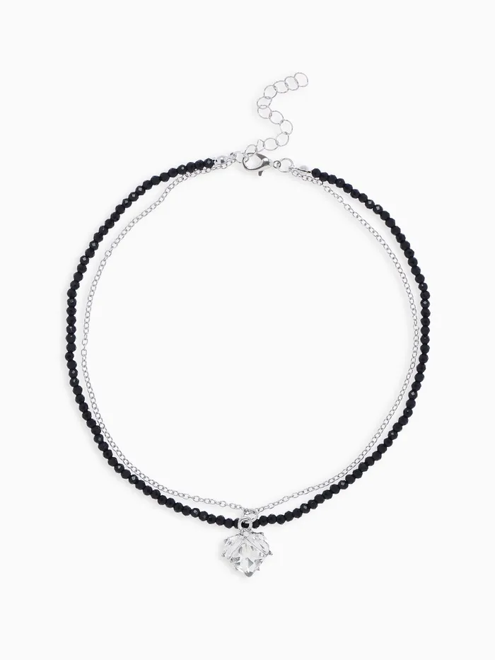 Колье из бисера «Сердце», двойной ряд, чёрно-белое в серебре — Характеристики