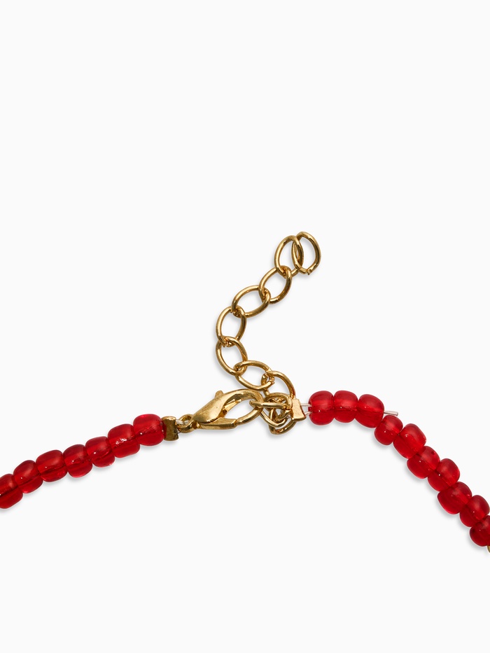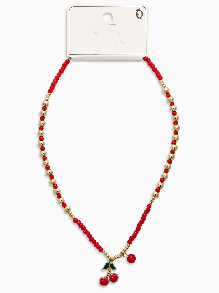 Прочувствуйте аромат летних садов с изящным колье из бисера в виде красных вишен, собранных на цепочку длиной 40 см. Сверкающие золотые нити подчеркивают богатство красного цвета, создавая атмосферу солнечного летнего утра. Яркие эмалевые подвески, изображающие зрелые ягоды, добавят вашему образу игривости и жизнерадостности.