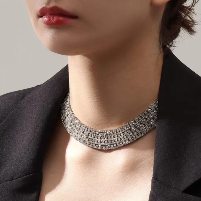Колье «Лёд», 9 рядов, белое в серебре, 35 см