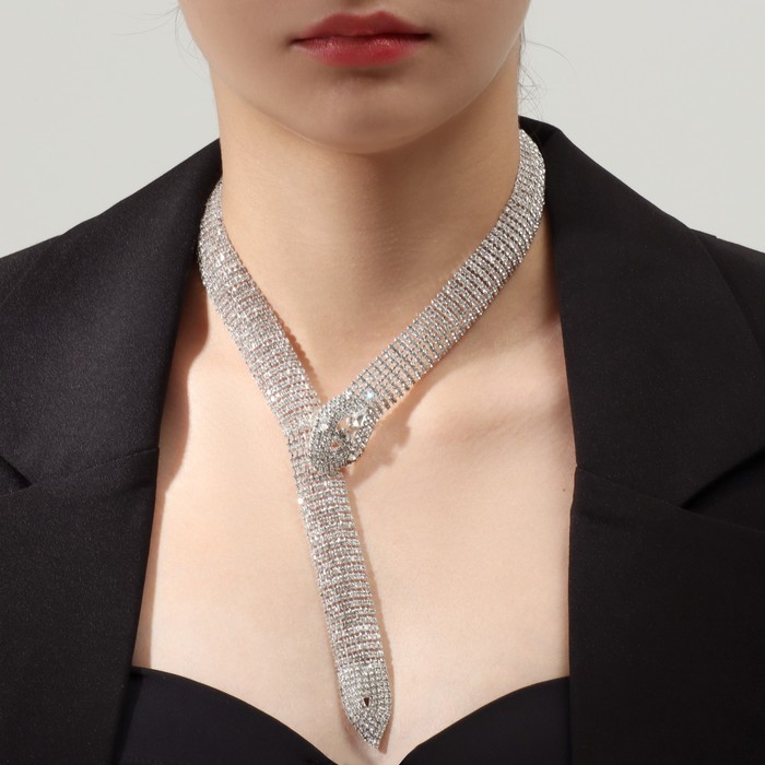 Колье «Лёд» змея, белое в серебре, 40 см — Характеристики
