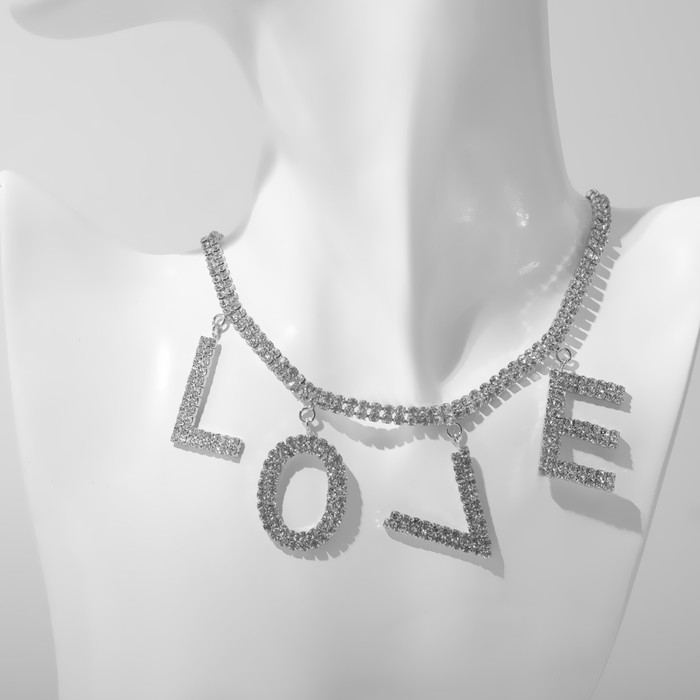 Колье LOVE, белое в серебре, 30 см — Характеристики