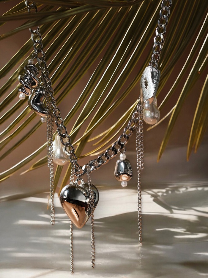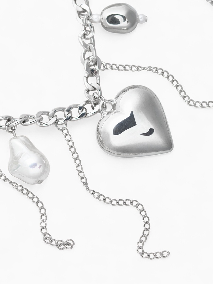 Колье «Многослойность» цепь с сердечком, белое в серебре — Характеристики