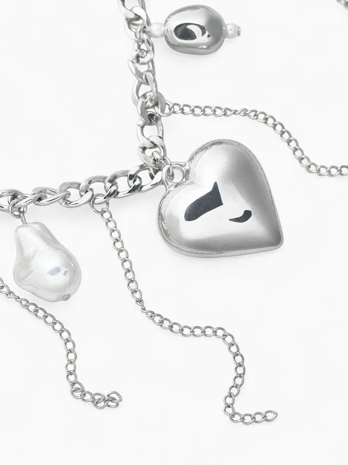 Изящное колье длиной 32 см выполнено в серебристом оттенке и украшено нежным сердечком, которое становится центральным акцентом украшения. Металлический материал с аккуратной отделкой и вставками создают лёгкий, но выразительный образ, идеально подходящий для современной женщины, ценящей стиль и утончённость.