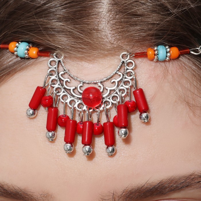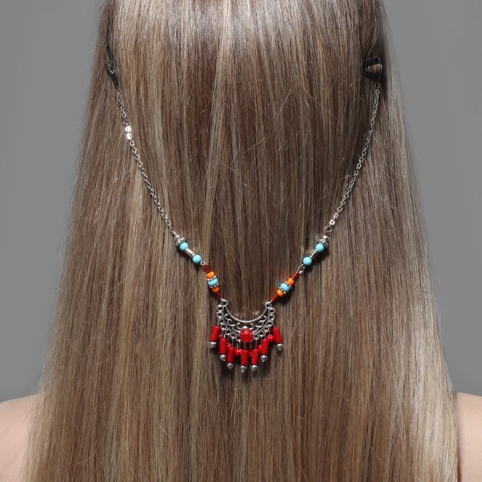 Колье на голову «Индия» бирюза, цвет красно-голубой в чернёном серебре, 32 см — Характеристики