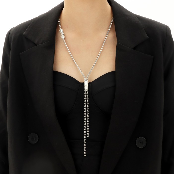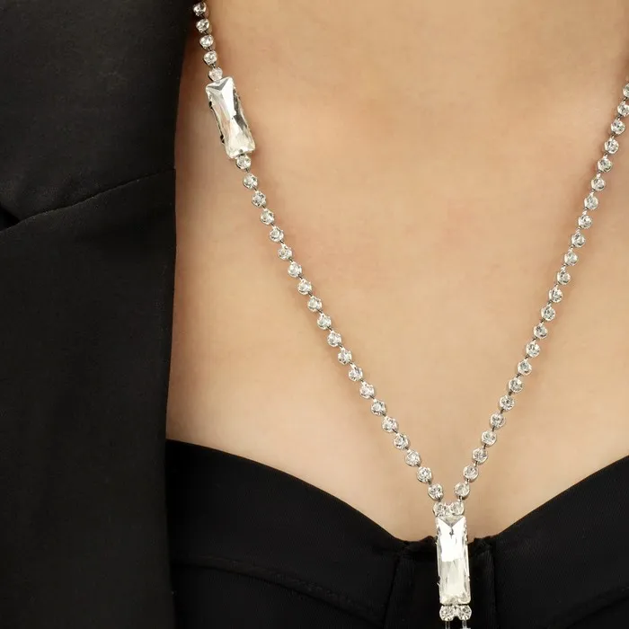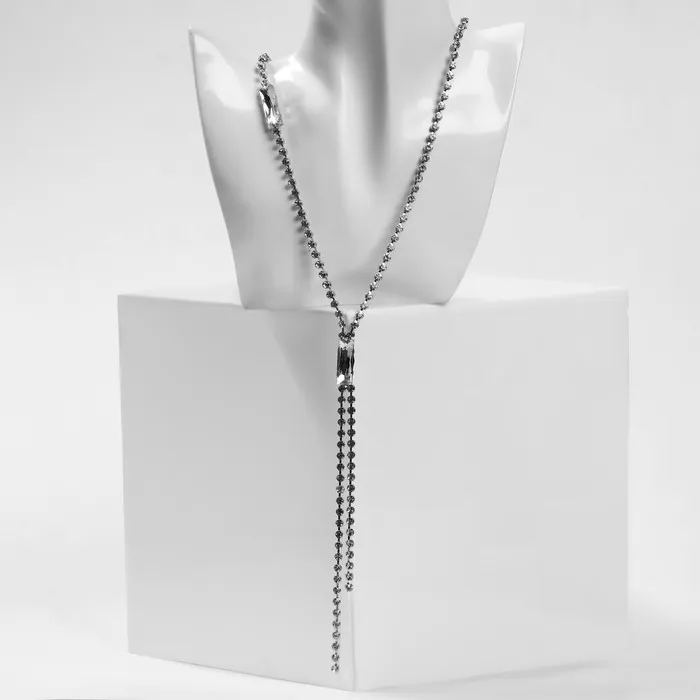 Колье «Нить» прямоугольники, белое в серебре, 70 см — Характеристики