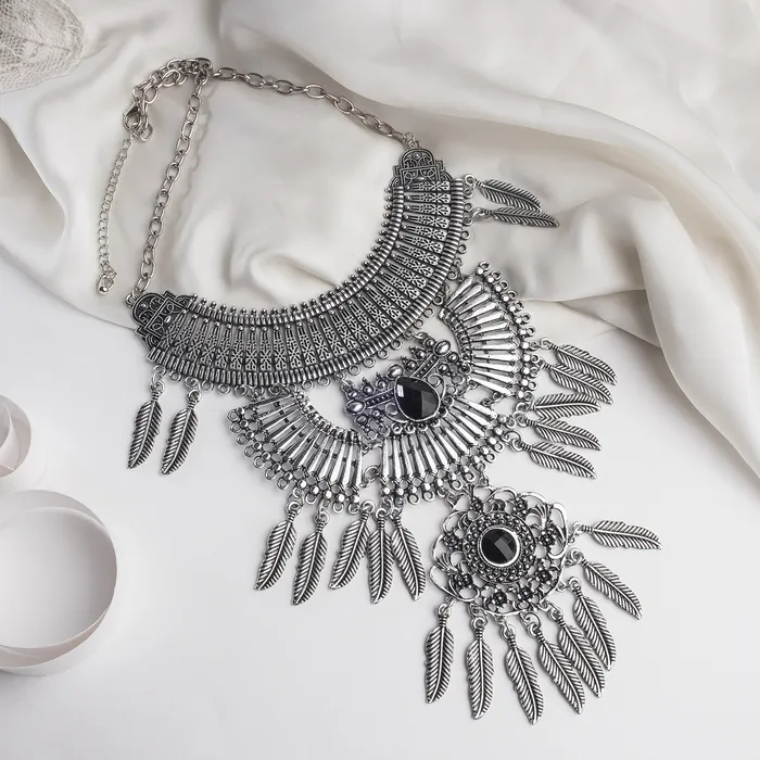 Колье «Одиссея» перья, чёрное в чернёном серебре, 42 см — Характеристики