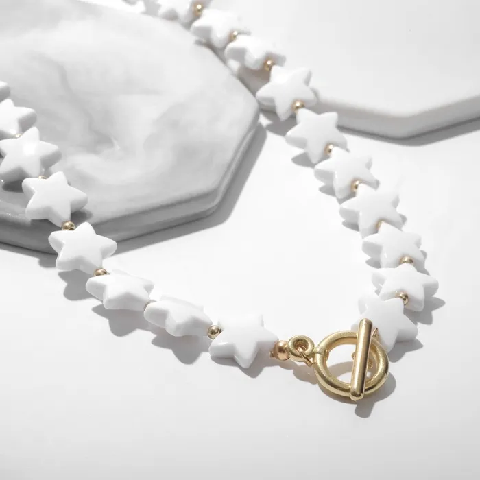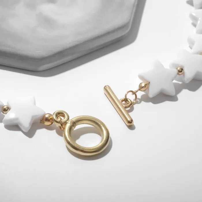 Колье «Перламутр» звёзды, белое в золоте, 41 см