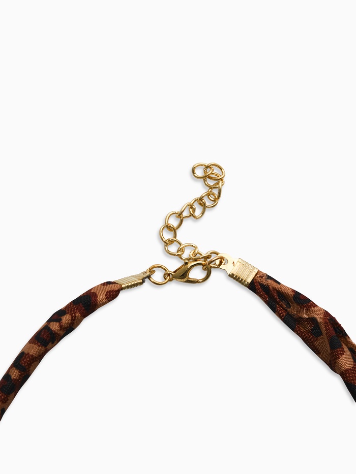Украсьте шею новым стилем с элегантным колье «Леопард», окрашенным в светло-коричневые тона и украшенным золотой подвеской. Изделие длиной 40 см сделано из текстиля, который мягко лежит на коже, не мешая движению и сохраняя комфорт в течение долгого времени. Леопардова тематика подчёркивает вашу индивидуальность и артистизм, рождая ассоциации с сильной и независимой женщиной.