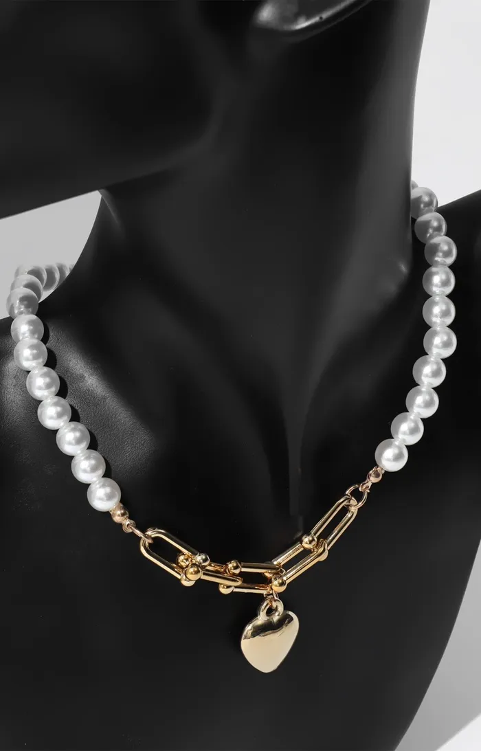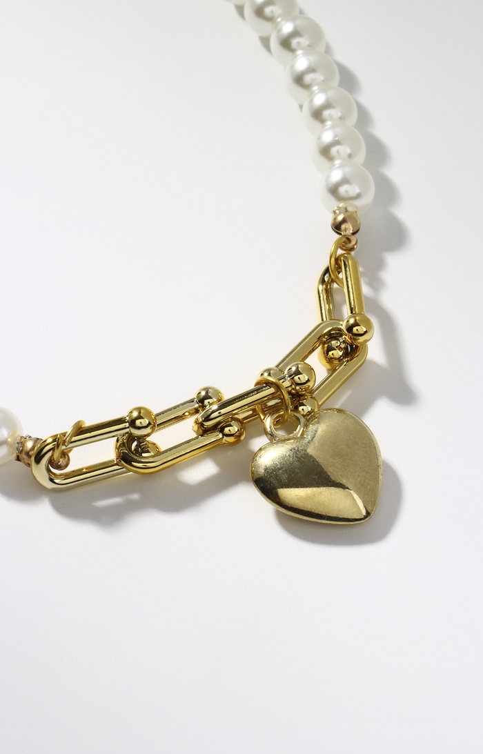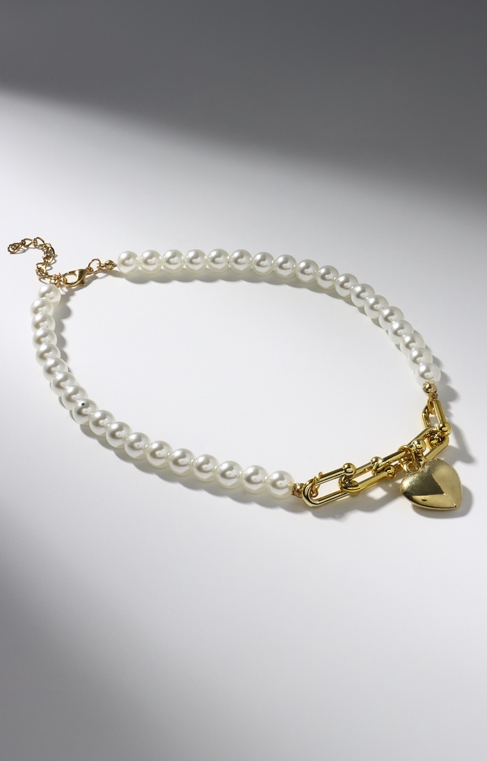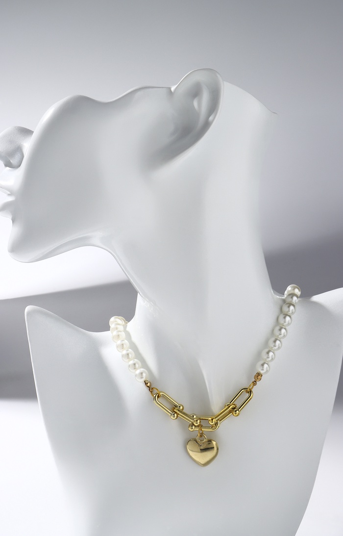 Колье с жемчугом «Сердце», белое в золоте, 37 см — Характеристики