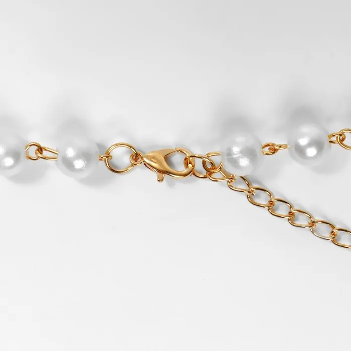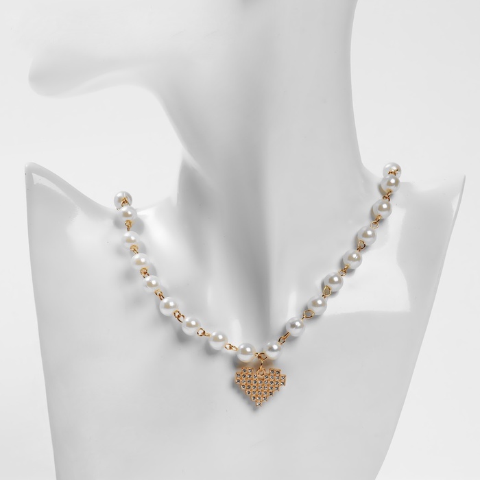 Колье с жемчугом «Сердце» квадратное, шар №6, белое в золоте, L=40 см — Характеристики