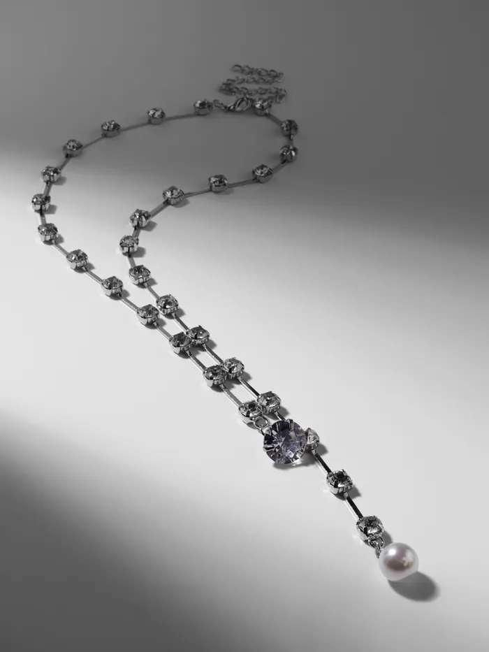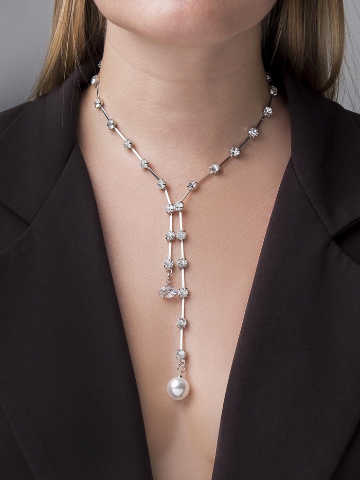 Колье с жемчугом «Цепь» импровизация, шар №8, белое в серебре, L= 40 см — Характеристики