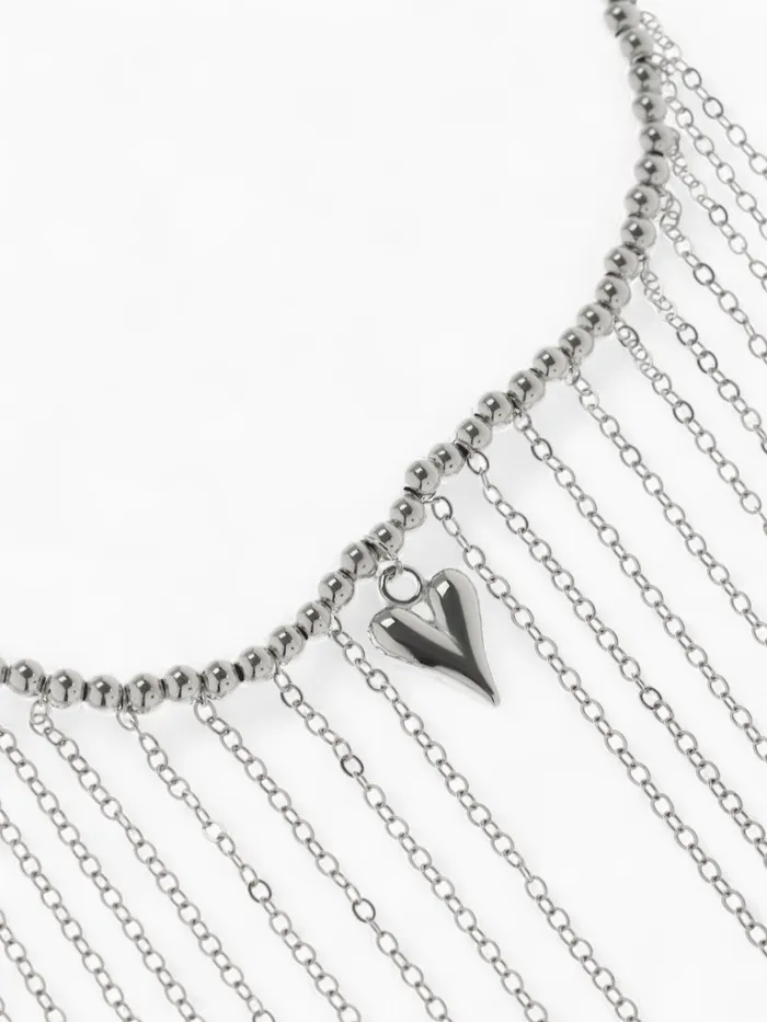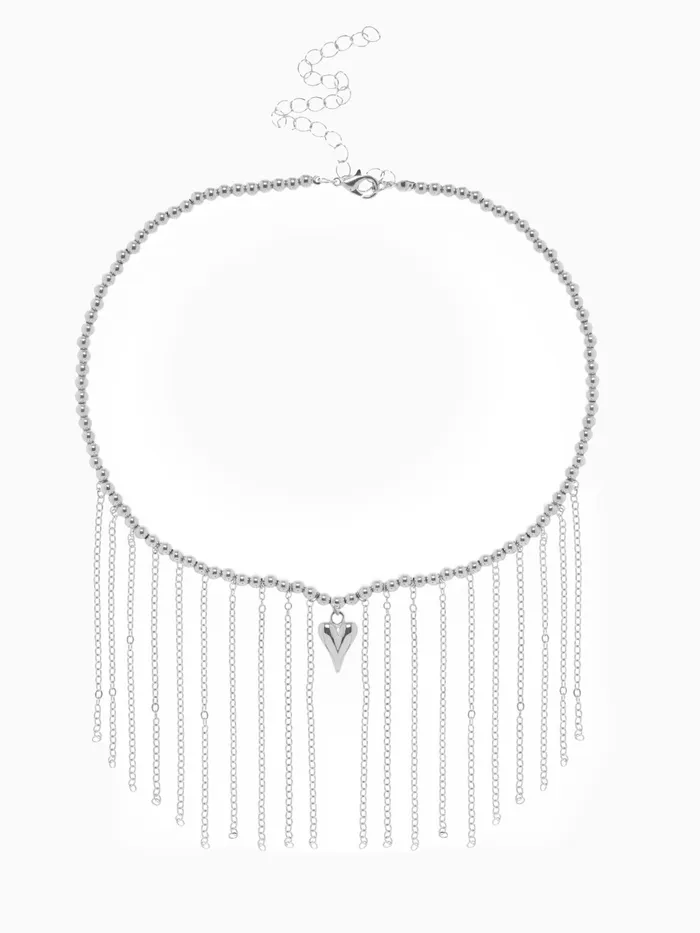Колье «Сердце» водопад с бусинами, цвет серебро — Характеристики