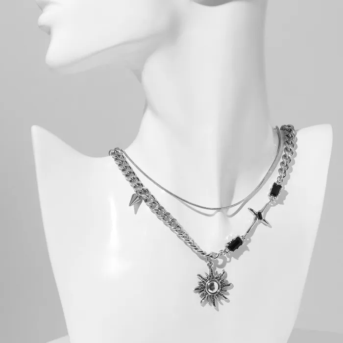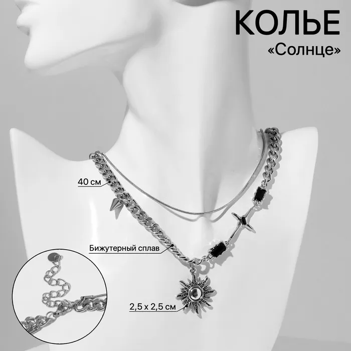 Колье «Солнце», чёрное в серебре, 40 см — Характеристики