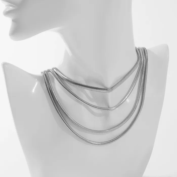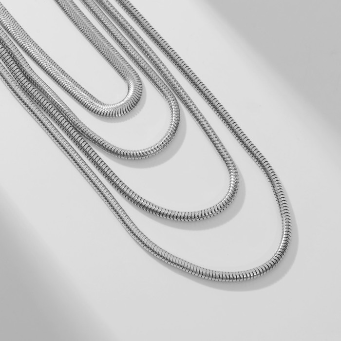 Колье «Цепь» стерео, 4 нити, цвет серебро, 70 см