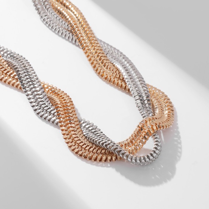 Колье «Цепь» стерео, косичка, цвет серебряно-золотой, 40 см — Характеристики