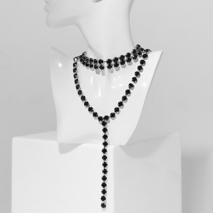 Колье «Вечернее» три ряда, чёрное в серебре, 45 см — Характеристики