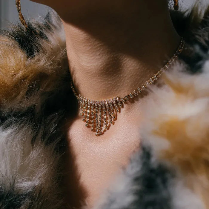 Колье «Водопад» мини, белое в золоте, 30 см — Характеристики