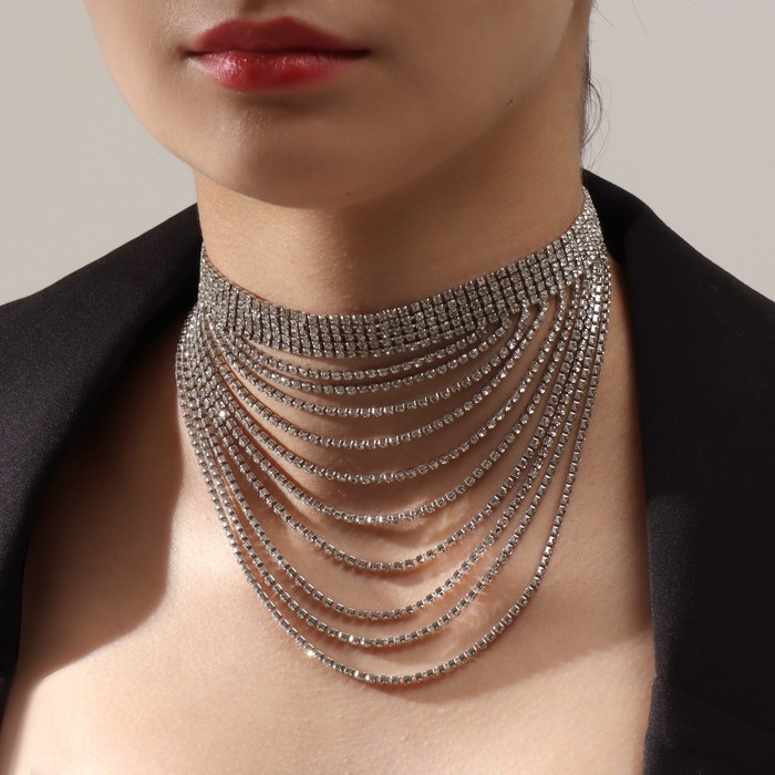 Колье «Водопад» волна, цвет белый в серебре, 25 см — Характеристики