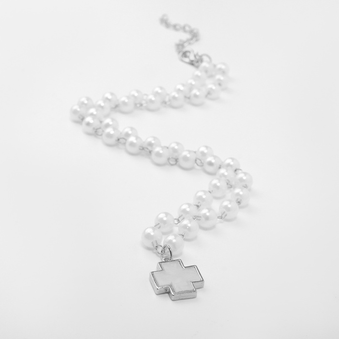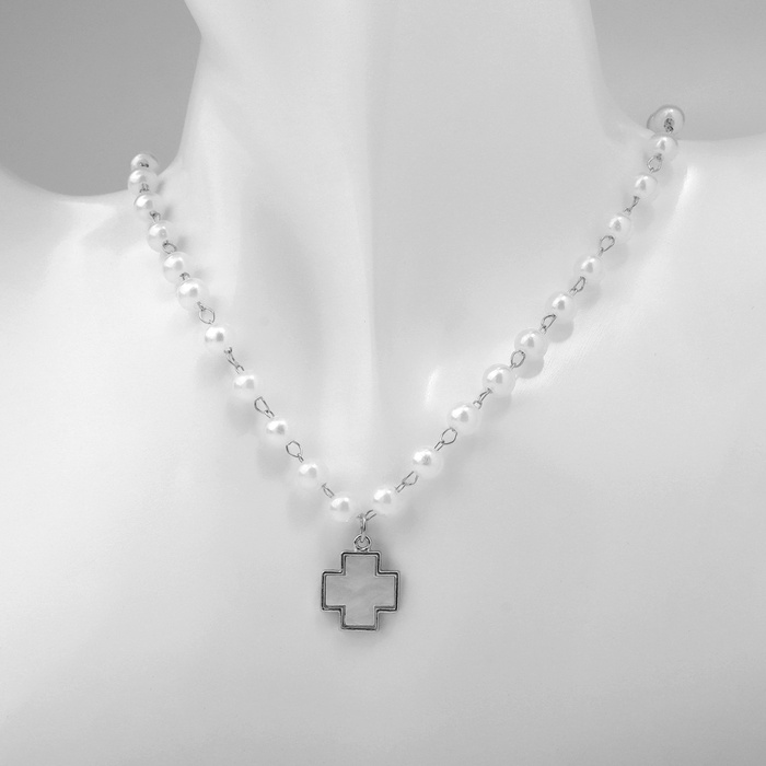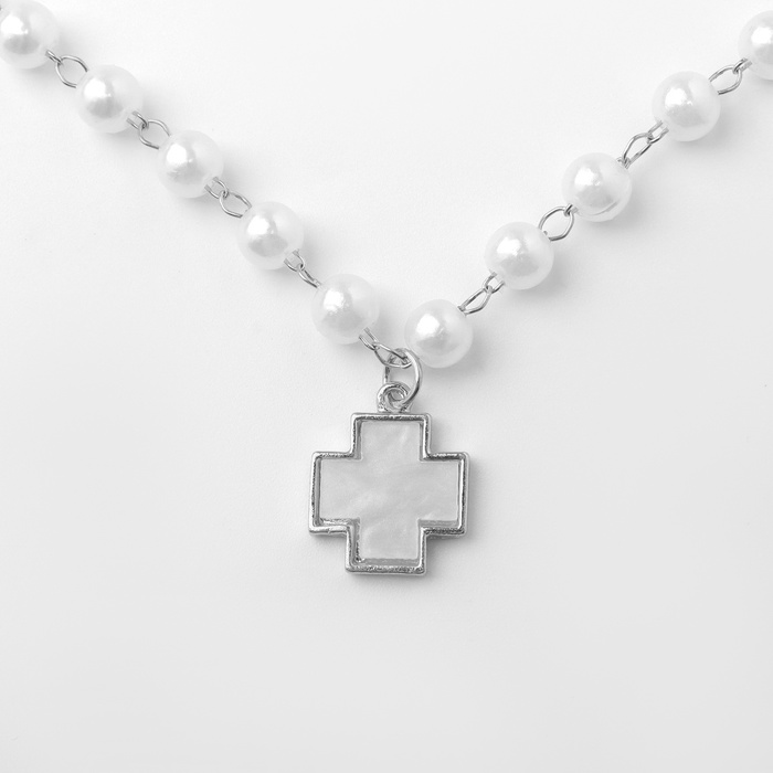 Колье «Жемчуг» элегантный крест, цвет серебро, 40 см — Характеристики