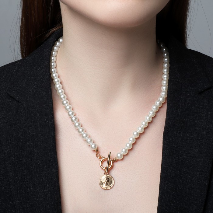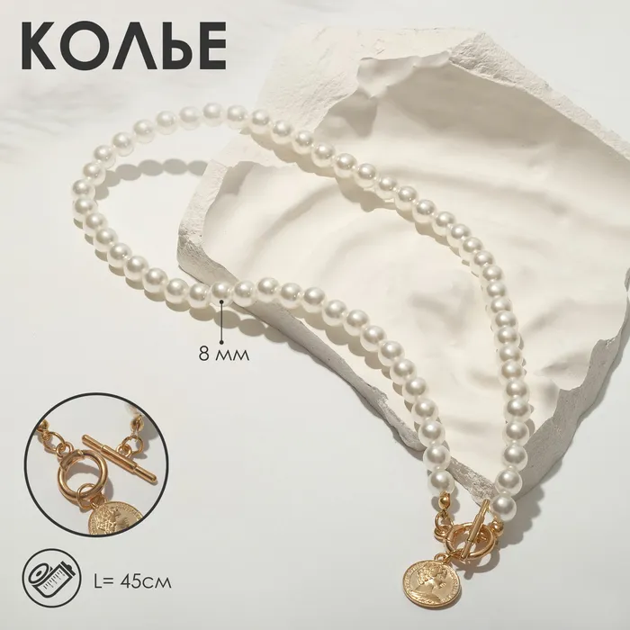 Колье «Жемчуг» круг, шар №10, белое в золоте, L= 45 см — Характеристики