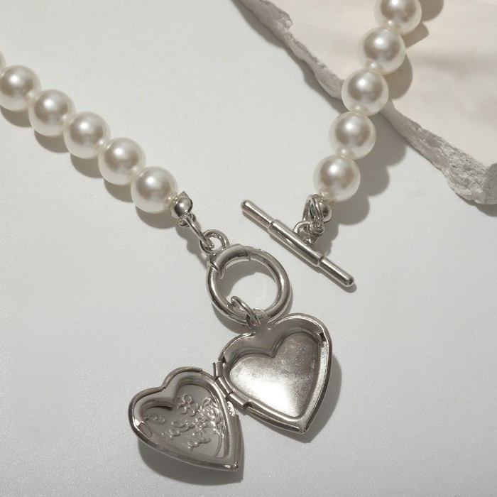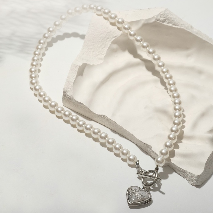 Колье «Жемчуг» сердце, шар №8, белое в серебре, L= 45 см — Характеристики