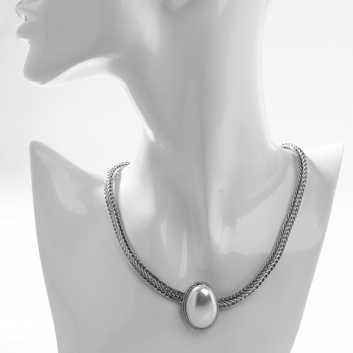 Колье «Жемчужина» овал, белое в серебре, 40 см — Характеристики