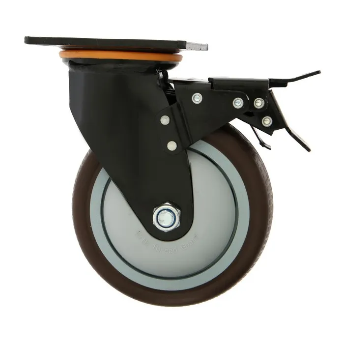 Колесо для трансп. тележек поворотное ТУНДРА, d=150 мм, на пдощадке, со стопорм, покрытие TPR=9917 — Характеристики