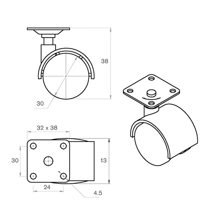 Колесо мебельное, d=30 мм, на площадке, чёрное — Характеристики