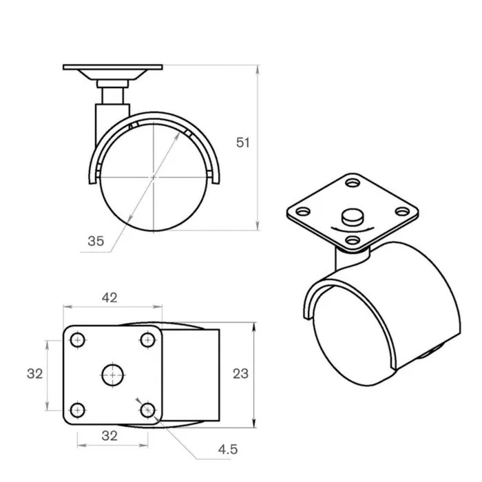 Колесо мебельное, d=35 мм, на площадке, прозрачное — Характеристики