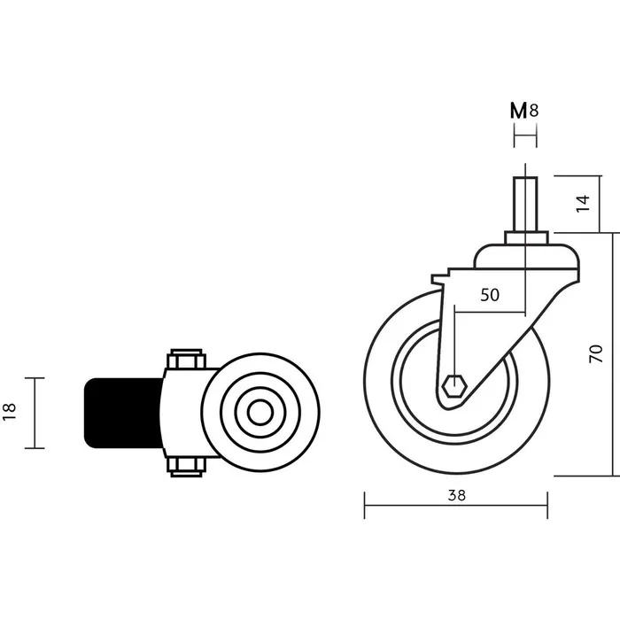 Колёсная опора подходит для различной мебели. Деталь изготовлена из прочного пластика и не отставляет следов на мягких напольных покрытиях.