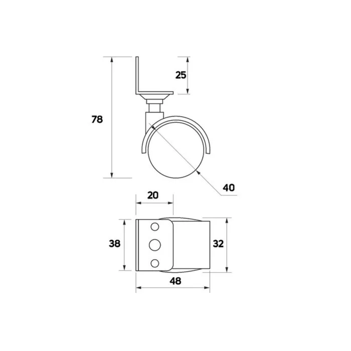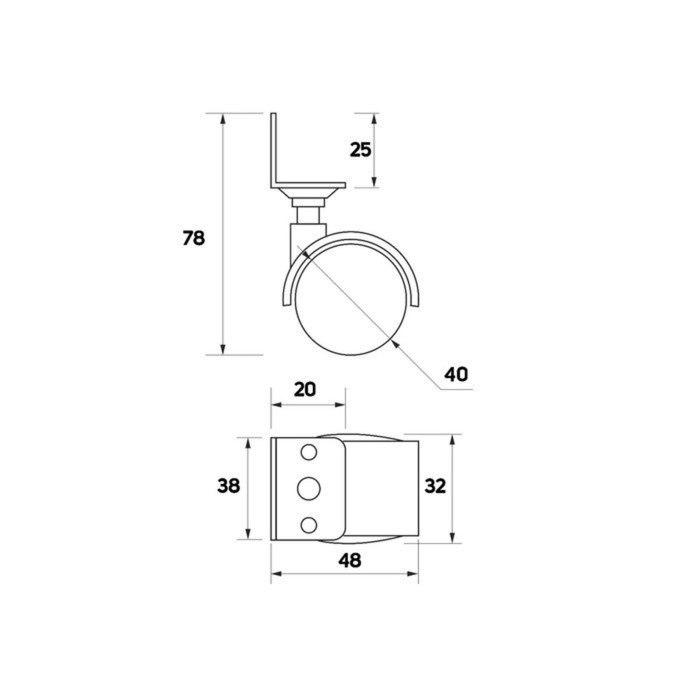 Колесо мебельное, d=40 мм, Г-образное, с креплением, без тормоза, черный пластик — Характеристики