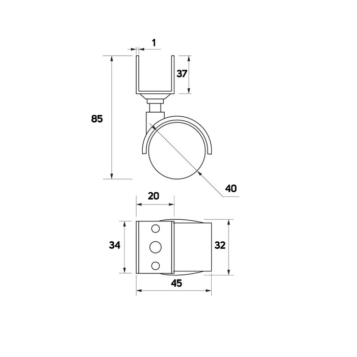 Колесо мебельное, d=40 мм, с U-образным креплением, без тормоза — Характеристики