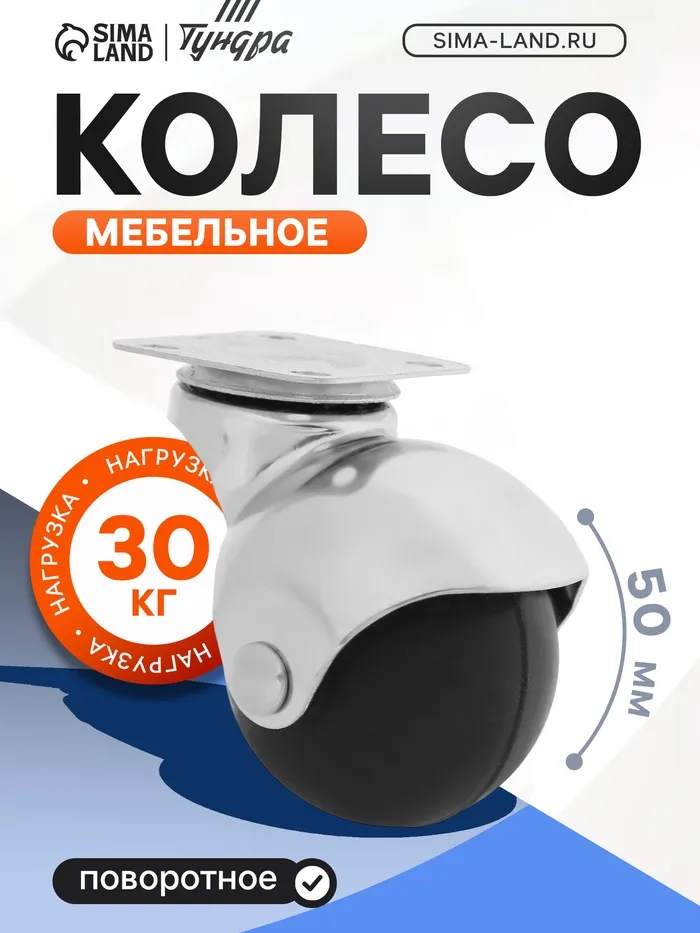 Колесо мебельное, «Шар», d=50 мм, пластик, черное — Характеристики