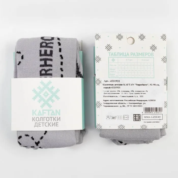 Колготки детские KAFTAN "Superhero" 116-122 см, серый — Характеристики